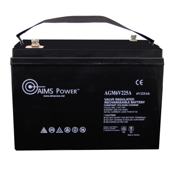 This 6V AGM battery is a heavy duty, deep cycle battery ideal for back-up power, golf carts and stored power applications. Affordable without compromising quality, this battery will provide power for years. This heavy duty rechargeable battery is made of AGM lead lead dioxide technology. The extra thick lead plates in this battery allow for a deeper discharge with less harm to the battery and provides 20% more charge/discharge cycles compared to other AGM batteries. This AGM battery has less instant energy, but greater long-term energy delivery. The dilute sulfuric acid electrolyte is absorbed by separators and plates, thus immobilized. Should the battery be accidentally overcharged producing hydrogen and oxygen, special one-way valves allow the gases to escape, avoiding excessive pressure build-up. Otherwise, the battery is completely sealed and is, therefore, maintenance-free, leak-proof and usable in any position. Perfect for applications requiring large amounts of power and provides longer run time.