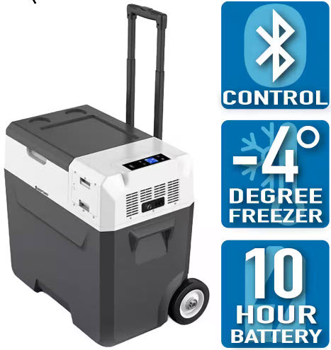 ACOPOWER LiONCooler X50A Rechargeable Solar Fridge Freezer, Snap-in Battery, Solar/AC/Car Charging, App Control, 0℉~50℉, 6” Large Wheels (52 Quarts)