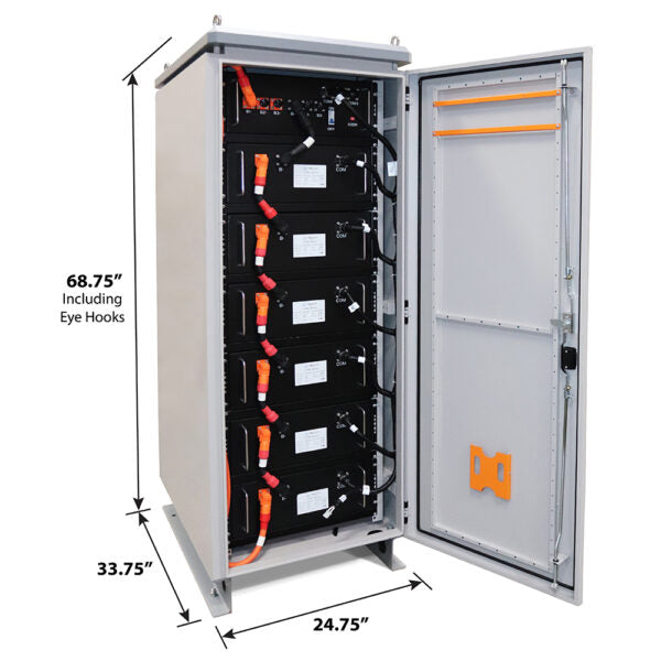 ◦ Cabinet includes qty 6 38.4V lithium packs wired in series.
